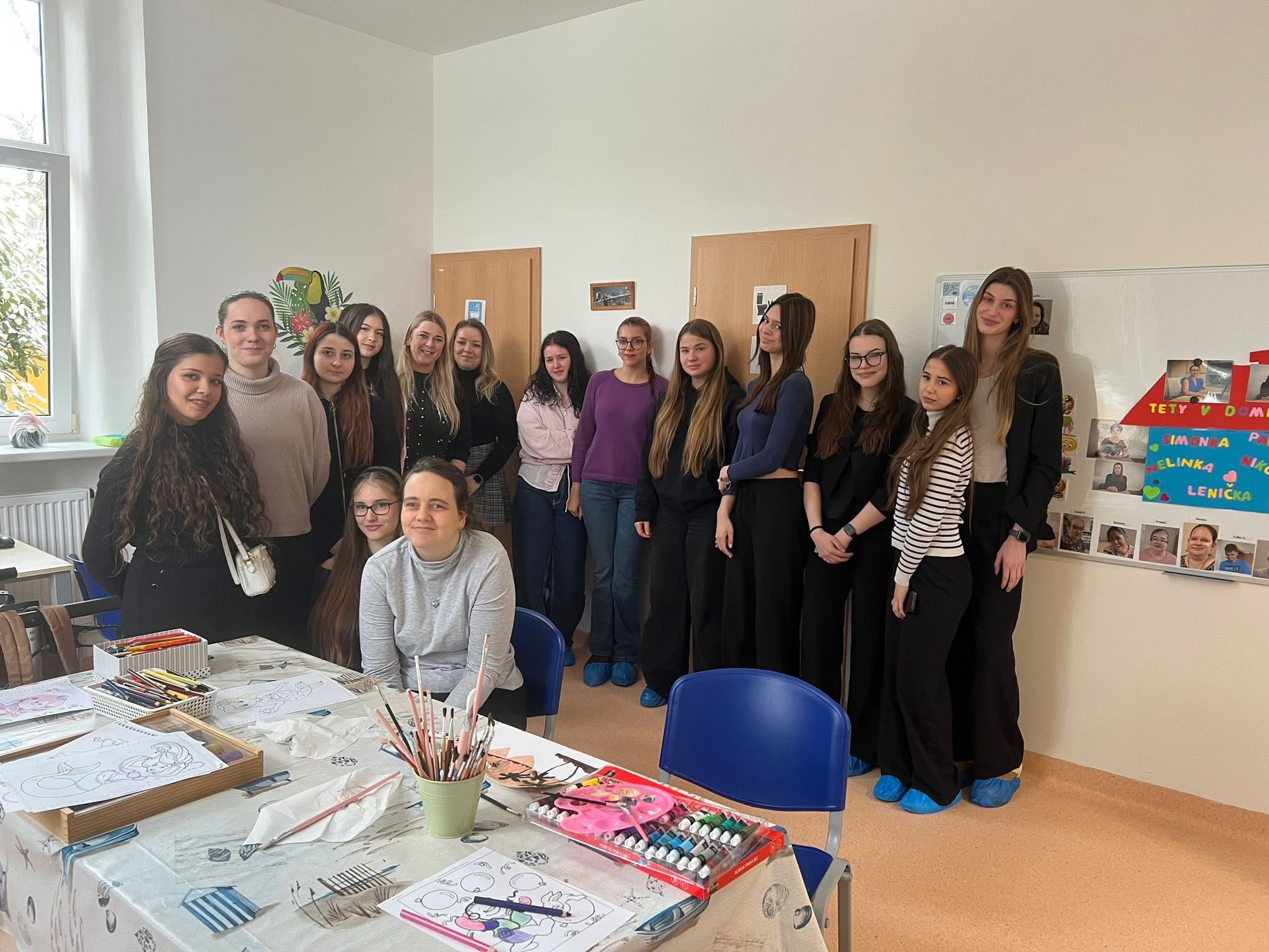 Velkou radost nám udělala také exkurze studentek Střední zdravotnické školy v Mostě. Studentky se seznámily s fungováním stacionáře, prohlédly si prostory a měly možnost nahlédnout do každodenní práce s klienty. Prostředí i činnosti je zaujaly natolik, že projevily zájem o vykonání odborné praxe právě u nás.